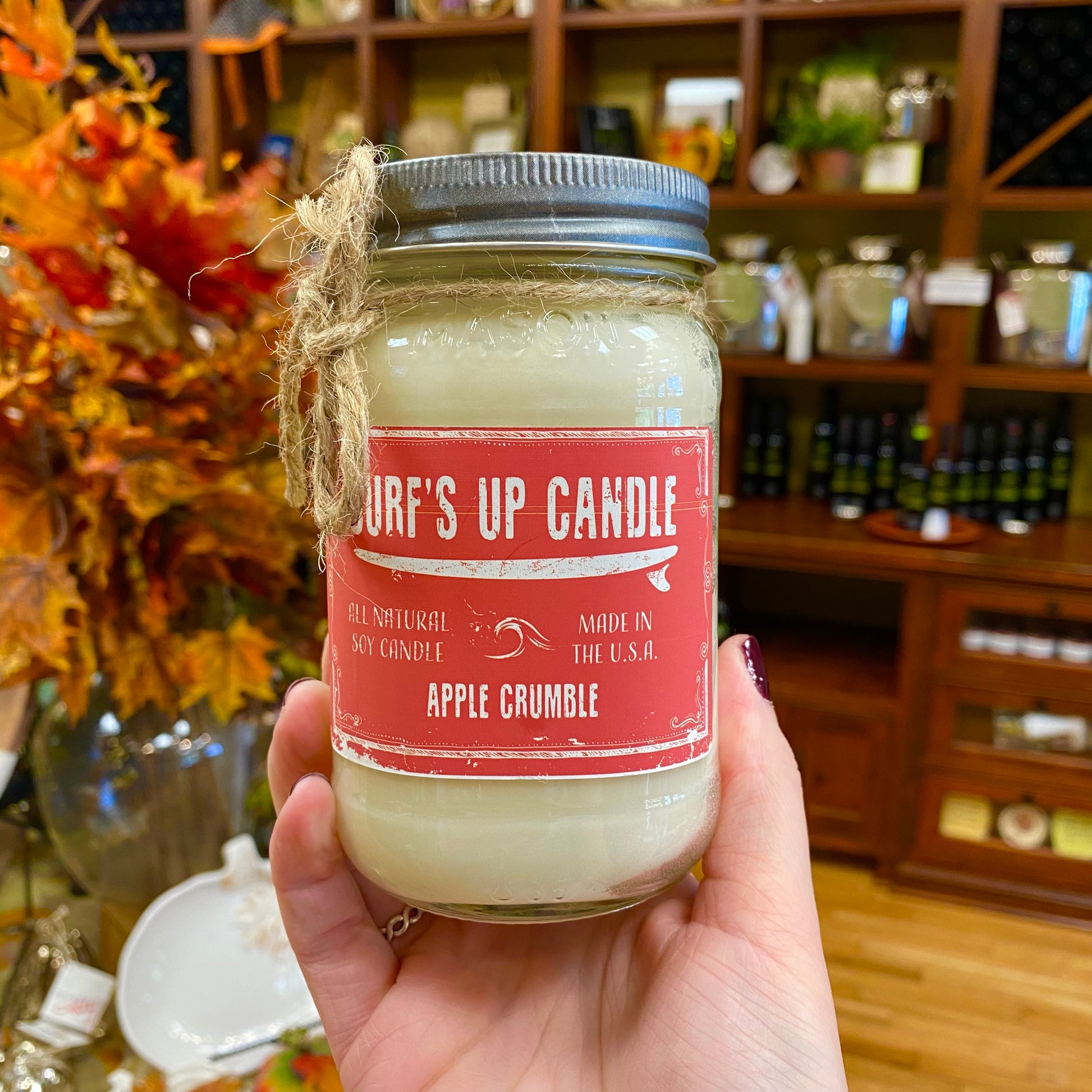Experience the warm feel of fall with our apple pie scent. This fragrance is infused with cinnamon, nutmeg, clove, orange, and cedarwood. Surf's up candles are all natural soy wax, no dyes, paraffin, lead, or petroleum content Hand poured in small batches using custom created scents features a cotton wick to ensure a smooth, clean burn