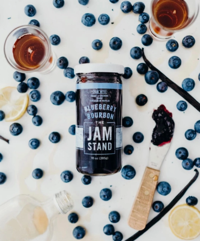 This jam tastes so sweet when it hits your lips! A zing of blueberry, the sweetness of bourbon and a sprinkle of vanilla.