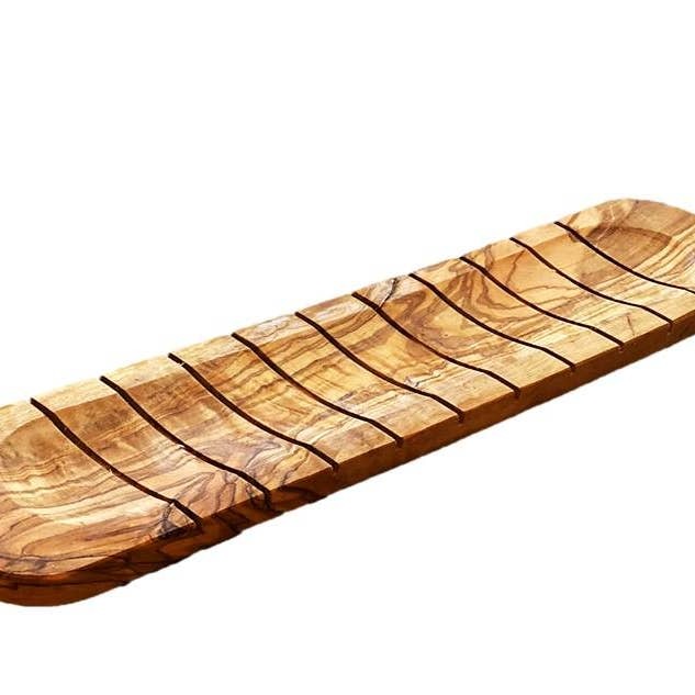Hand carved from Olive Wood. This piece will be stunning on your table and will give you the perfect slice of bread!