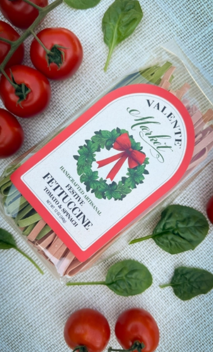 Fill your holiday baskets with seasonal cheer. Our spinach and tomato fettuccine is a festive mix of flavors. And tastes great too.
