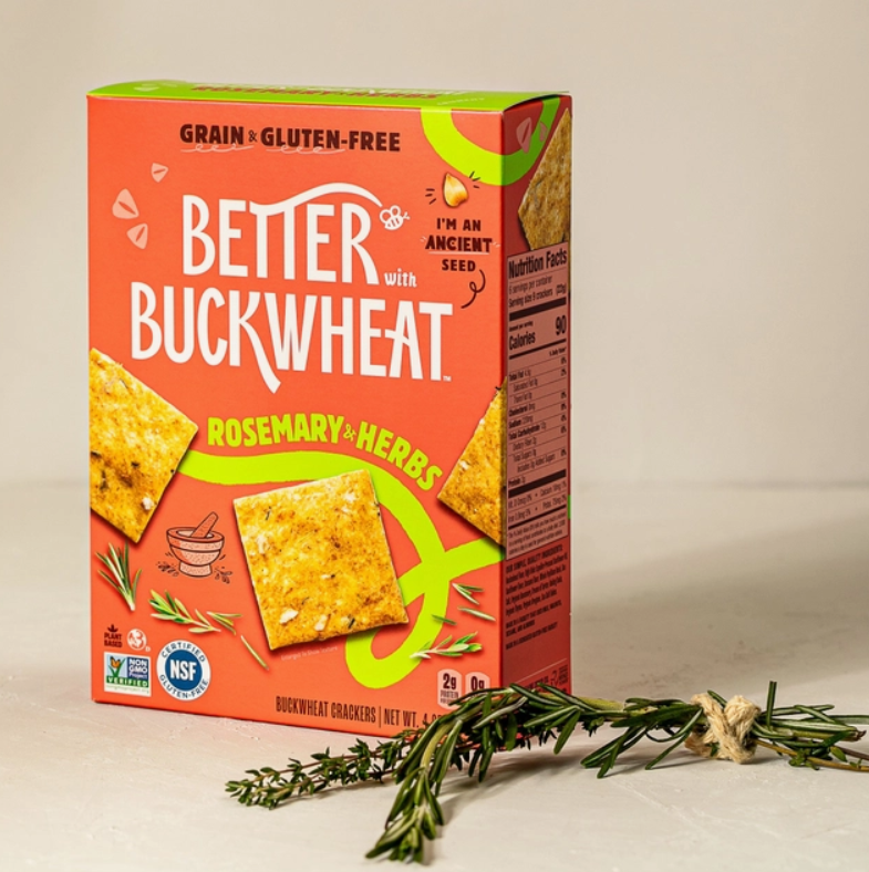 Rosemary & Herbs Better with Buckwheat Crackers are made in a certified gluten-free facility, to ensure the highest standards of safety and quality. Pair this with eye-catching packaging that stands out on store shelves and you have happy customers and repeat cracker sales!