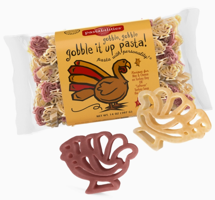 Gobble Gobble Pasta! Perfect to serve on Thanksgiving with the cute turkey shapes! There are 2 yummy recipes included - one for Turkey Leftover Soup for the day after Thanksgiving or make our Homemade Mac & Cheese for the big event! 14 oz bag of fun-shaped pasta! The Pasta Shoppe has been creating fun pasta and Italian food for decades! Whether you are shopping for holiday, Christmas, or organic items, or fun gifts for your store, you’ll find lots of options with our Pastabilities brand. Don’t miss our soup, pasta sauce, mac and cheese or other unique goodies – are you ready, spaghetti?