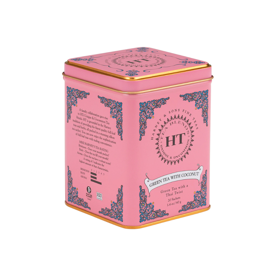 Our Green Tea with Coconut and Ginger is an exotic combination of green teas, coconut, ginger, vanilla, and lemongrass which make a delicious and distinctive tea blend that is both smooth and spicy.