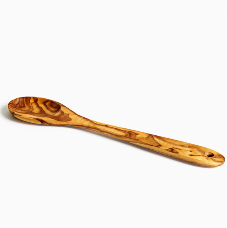 Olive Wood Spoons stir and mix sauces, stews, soups and gravy. They are safe on non-stick surfaces and stainless steel. They are resistant to heat due to its oily characteristics. Olive wood is a hard wood making it very dense and durable for everyday use. Olive wood is nonporous so no germs or odors are retained. MATERIALS: Olive Wood ORIGIN: Tunisia CARE INSTRUCTIONS: Hand wash and polish with food safe oil