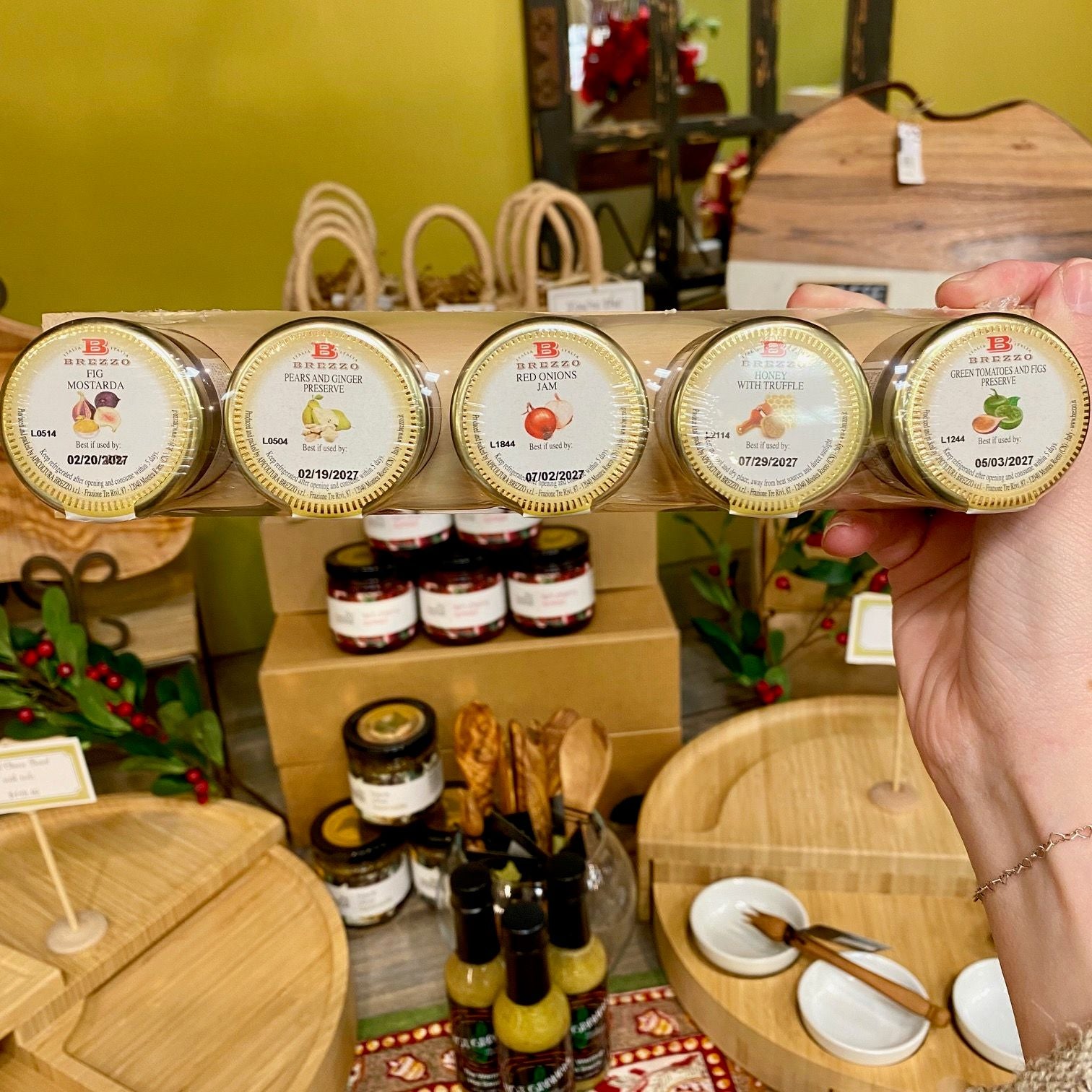 Mixed Condiments for Cheese on Wooded Tray Gift Set