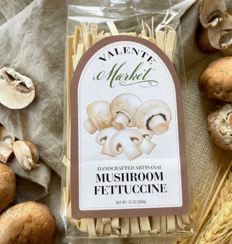 Mushroom Fettuccine is an earthy flavored pasta. Ingredients: unbleached wheat flour, mushroom powder, and water