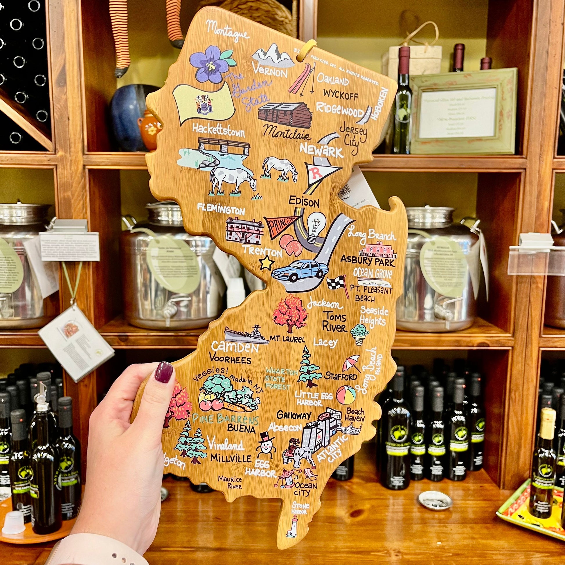 Celebrate your favorite state with these beautifully crafted state-shaped boards featuring artwork by Fish Kiss™ artist Anne Klein. The hand-drawn artwork took over two years to complete due to all the research and details— your shoppers will love the hunt for their hometown! The colorful UV printed artwork creates a fun, conversation-starting charcuterie board for serving cheese, meat, fruit and crackers. The blank back side of the board provides all the benefits of a bamboo cutting board for food prep. And when the prep and serving is done, the included hang tie allows the board to double wonderfully as wall art.