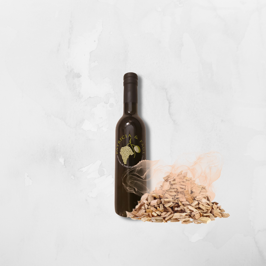 Savory notes of smoky olive wood are infused with the highest quality, fresh extra virgin olive oil to make our Olive Wood Smoked Olive Oil. Our smoked olive oil is all natural with no artificial ingredients, preservatives or refined carrier oils! The flavor of olive wood smoke is close to that of oak wood smoke. In Andalusia, Spain, olive wood is commonly used for grilling fish, poultry, meats and vegetables. Use in potato salad, marinades, over poultry, in sauces such as BBQ sauce, brushed on grilled meats, with vegetables and even pasta. Pairs well with Sicilian Lemon White Balsamic & Espresso Balsamic.