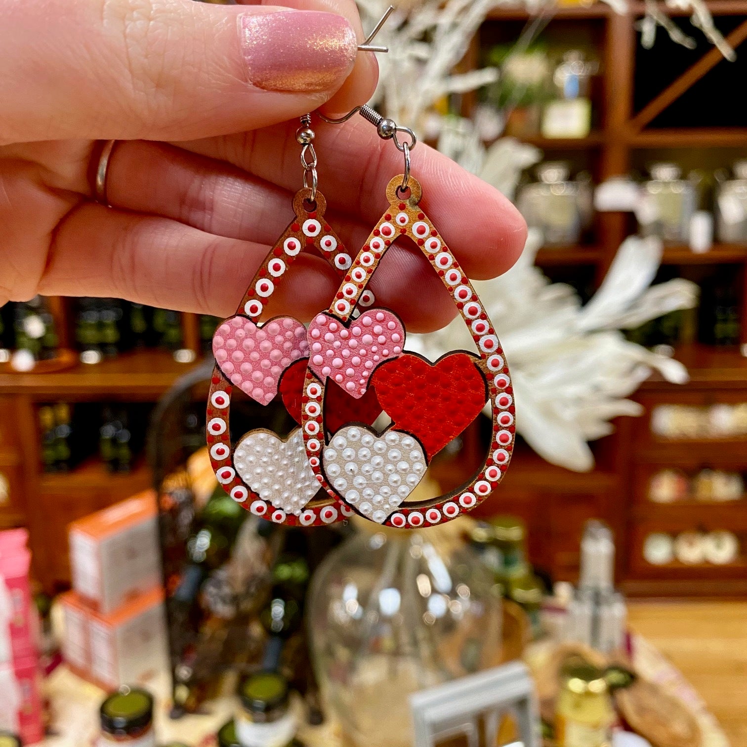 Hand painted earrings created by Mandalas & More. These will make the perfect Valentines Gift!