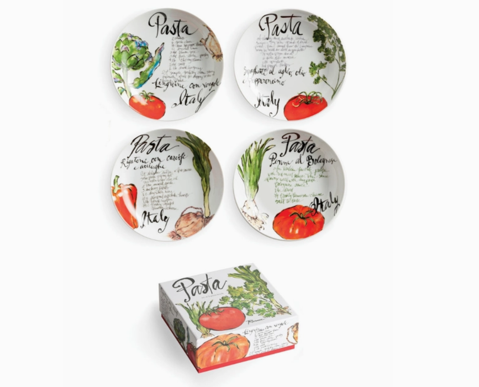 Pasta italiana bowls set of 4, assorted designs, in a gift box Porcelain, Microwave & Dishwasher Safe