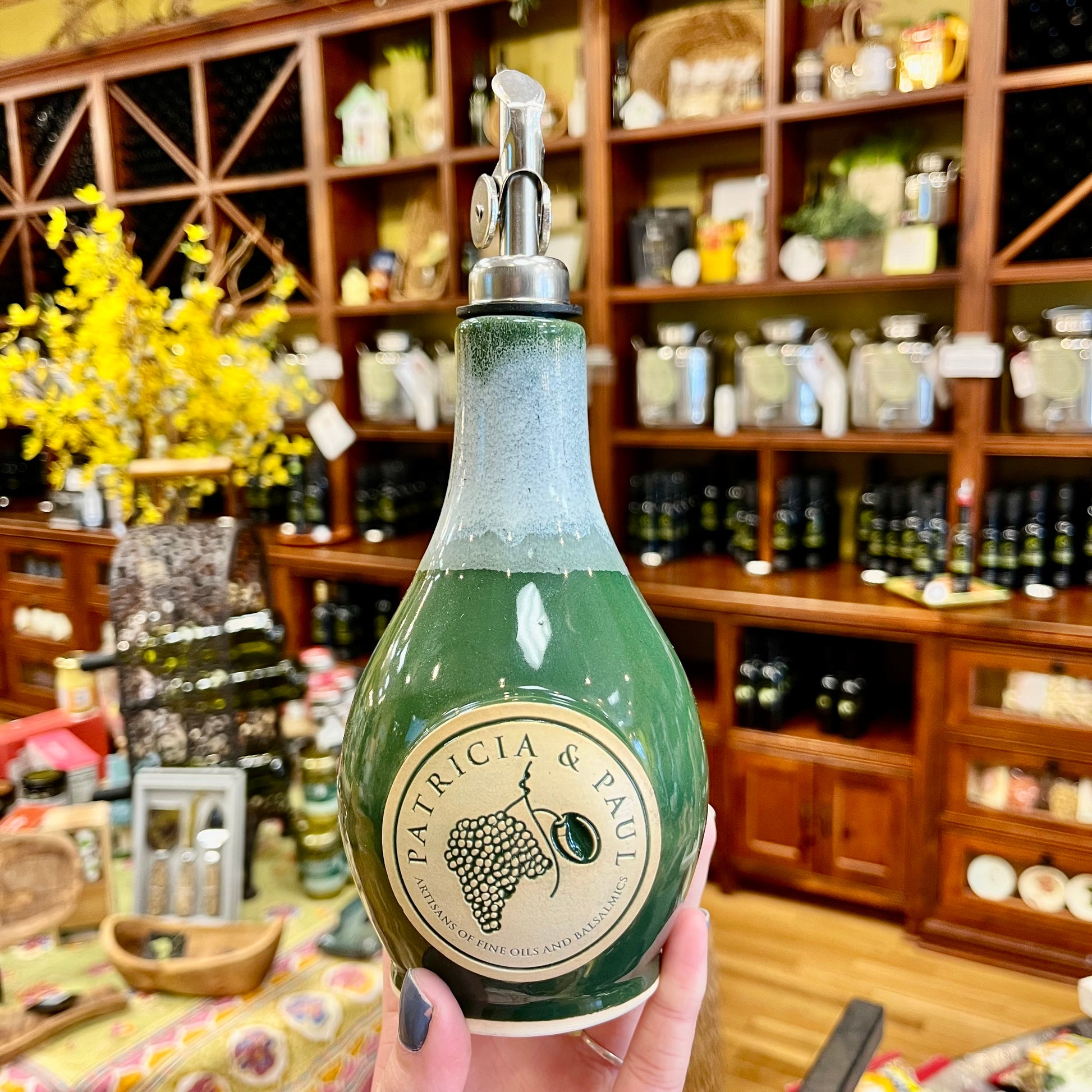 Introducing our handmade Olive Oil Cruets! Each cruet comes with a EVOO pourer and can hold up to 12oz (our medium size bottle).