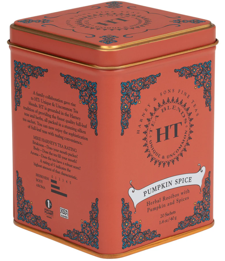 A delectable harvest-time brew, our Pumpkin Spice tea is the perfect way to relax at the end of the day. This herbal tea features a masterful autumnal blend of pumpkin flavors and spices that will warm you up, inside and out. A vibrant red in color, you'll find this brew sports a light body and wonderful flavors. Offered seasonally in limited quantities. Caffeine-free.