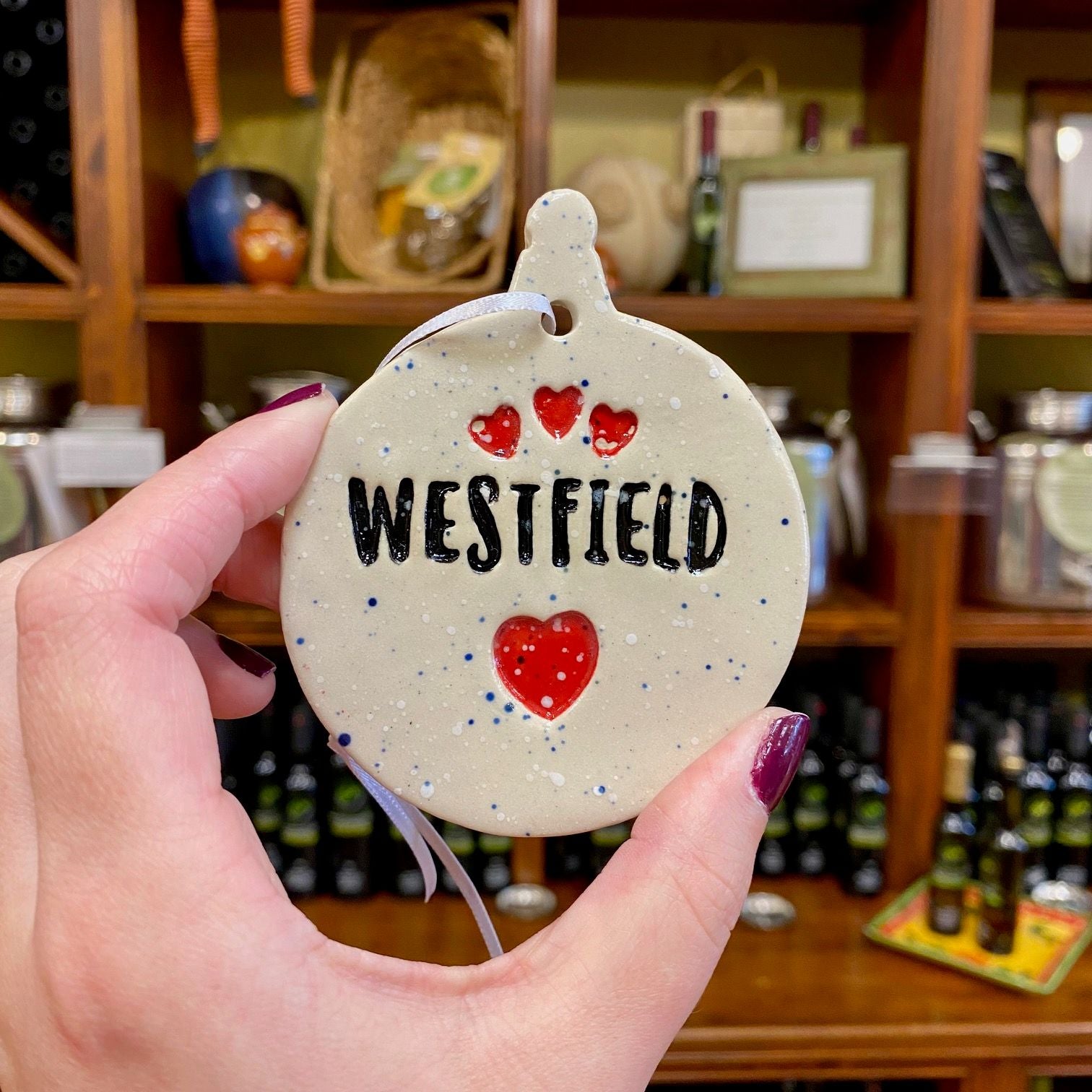 This Holiday season we have once again partnered with local pottery MASA Pottery. Each ornament has been handcrafted and hand painted. Show off your town pride!
